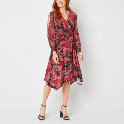 Perceptions Long Split Sleeve Paisley Midi Fit Flare Dress Color Black Red Jcpenney